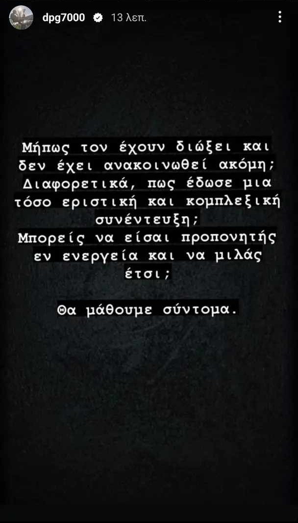Ο ισχυρός άνδρας του «τριφυλλιού» ανήρτησε ιστορία στον προσωπικό του λογαριασμό στο instagram, όπου αναφέρει τα εξής: