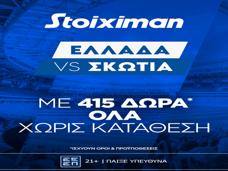 Το δικό σου (στοιχηματικό) φινάλε στον όμιλο της Ελλάδας, στα προκριματικά, μπορεί να απέχει εντελώς από το δικό της. Η Εθνική δεν τα κατάφερε, αφού Δανοί και Σκωτσέζοι την σταμάτησαν από τα όνειρα της επιστροφής σε Παγκόσμιο Κύπελλο. Τους δεύτερους, τους υποδέχεται τώρα στην έδρα της κι εσύ παίζεις στο Master της Stoiximan, εντελώς δωρεάν* και περιμένεις να δεις αν θα πάρεις κάποια ( ή και όλα) από τα 10.000€ σε μετρητά.