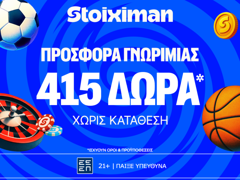 Προσφορά* γνωριμίας από τη Stoiximan με 415* Δώρα* χωρίς κατάθεση*!