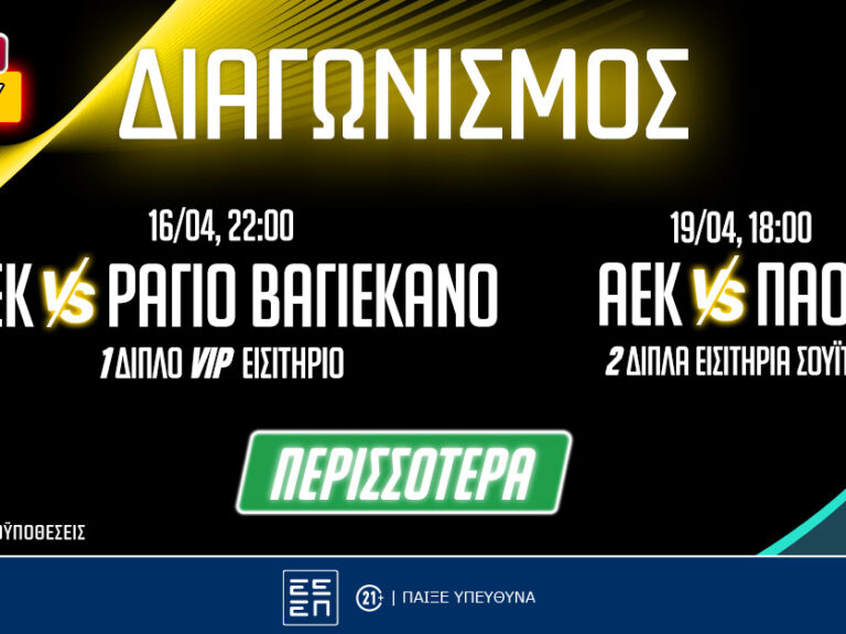 Με τον σούπερ διαγωνισμό του PS Blog ζεις δύο τεράστιες ποδοσφαιρικές βραδιές με την ΑΕΚ, απολαμβάνοντας premium εμπειρίες από VIP και σουίτα*!