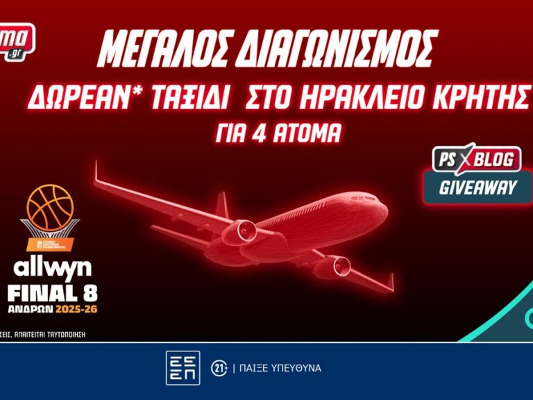Το PS Blog σού δίνει την ευκαιρία να παρακολουθήσεις το Allwyn Final 8 Κύπελλο Μπάσκετ Ανδρών με ένα δωρεάν* ταξίδι για 4 άτομα στο Ηράκλειο της Κρήτης.