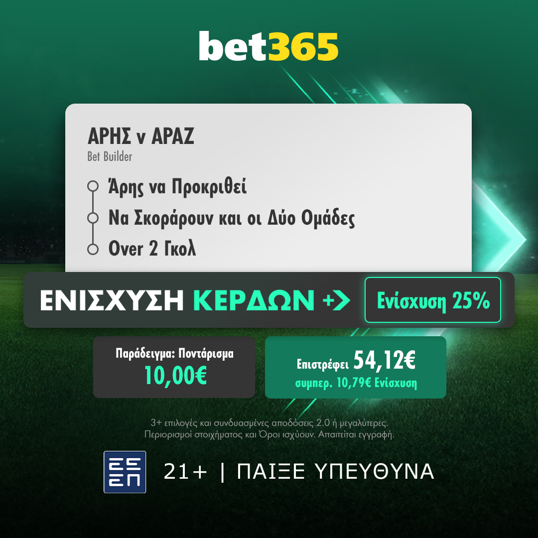 Ώρα πρόκρισης για τον Άρη, ο οποίος απόψε το βράδυ (21:15) καλείται να ανατρέψει το εις βάρος του σκορ (2-1) που διαμορφώθηκε στο Αζερμπαϊτζάν και να πάρει την πρόκριση στον τρίτο προκριματικό γύρο του Conference League. Η εκπληκτική… Ενίσχυση Κερδών είναι διαθέσιμη για την αναμέτρηση!