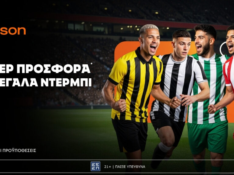 Η Betsson φέρνει τη σούπερ προσφορά* της ημέρας, αποκλειστικά για τα δύο κυριακάτικα ντέρμπι των πλέι οφ του ελληνικού πρωταθλήματος, Παναθηναϊκός – Ολυμπιακός και ΑΕΚ – ΠΑΟΚ!