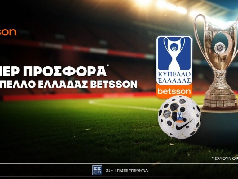 Η Betsson φέρνει σούπερ προσφορά*, αποκλειστικά για τους αγώνες του Κυπέλλου Ελλάδας Betsson ποδοσφαίρου αυτού του διημέρου!