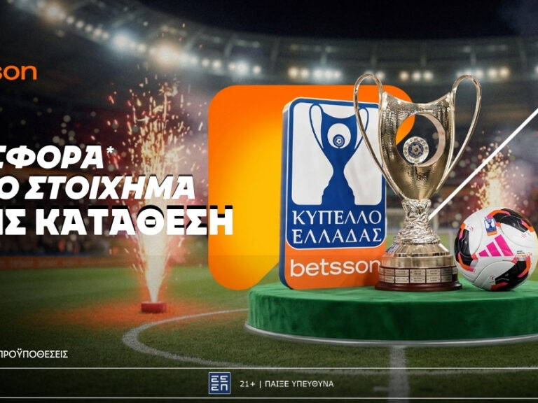 Ο μεγάλος τελικός του Κυπέλλου Ελλάδας Betsson πλησιάζει και η Betsson μπαίνει στο κλίμα της αναμέτρησης ΠΑΟΚ – ΟΦΗ με μία σούπερ προσφορά* χωρίς κατάθεση για το στοιχημα.