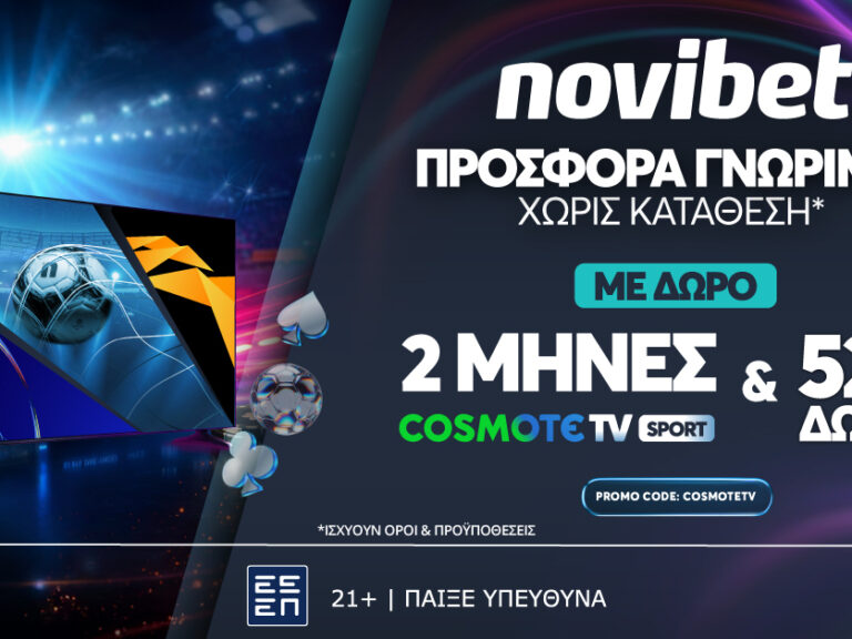 Ναι, καλά είδες στον τίτλο. Αν μπεις τώρα και κάνεις την εγγραφή σου στη Novibet, μπορείς να πάρεις 2 μήνες COSMOTE TV Sport εντελώς ΔΩΡΕΑΝ χωρίς να βάλεις ούτε 1€.