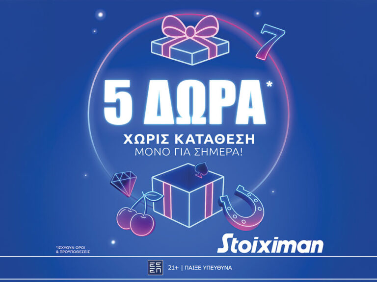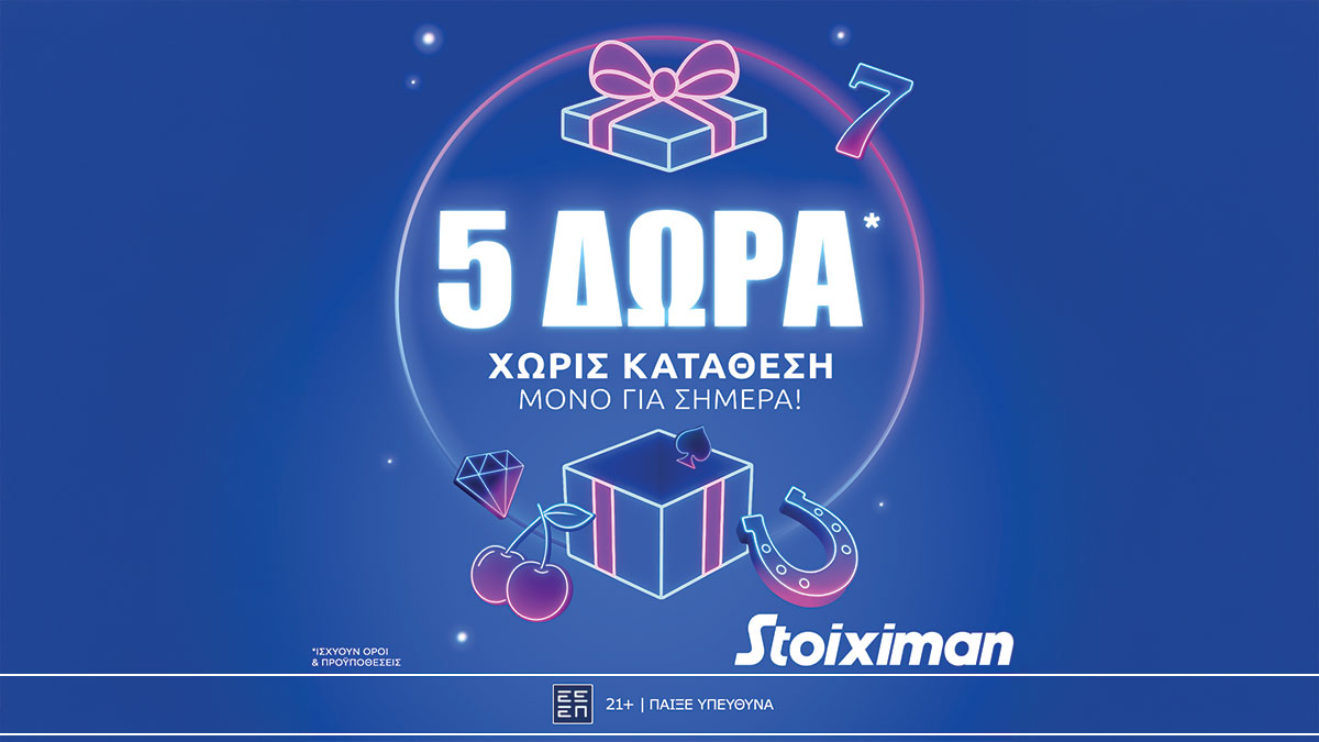 Αν επιθυμείς να γίνεις μέλος της Stoiximan, αξίζει να το κάνεις κάπου εδώ. Με την εγγραφή σου, παίρνεις αυτόματα 415 δώρα* χωρίς κατάθεση για στοίχημα και όχι μόνο. Το παιχνίδι σου μπορεί να ξεκινήσει κάπου εδώ αν το αποφασίσεις, με τις καλύτερες προϋποθέσεις και μεγάλη ώθηση!