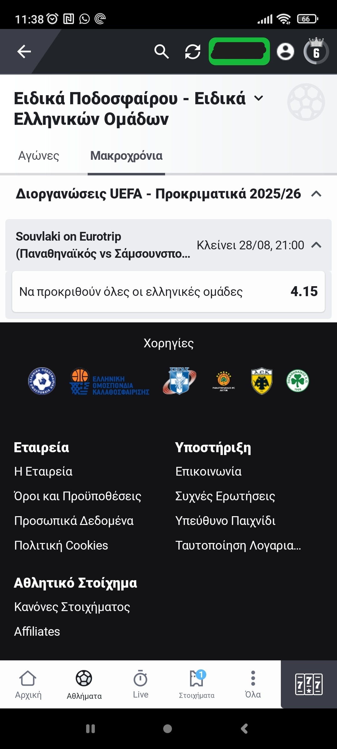 Επιπλέον, βρίσκεις και το fun bet “Souvlaki on Eurotrip”, το οποίο αφορά την πρόκριση και των τριών ελληνικών ομάδων στους ομίλους, σε ενισχυμένη απόδοση 4.15.
