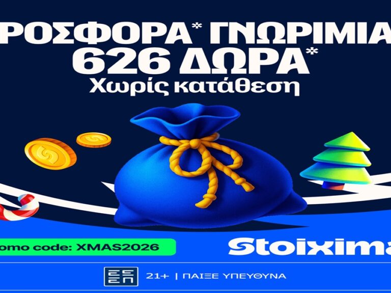Το 2026 άνοιξε τις πύλες του και η Stoiximan το καλωσορίζει με μία super εορταστική προσφορά* χωρίς κατάθεση!