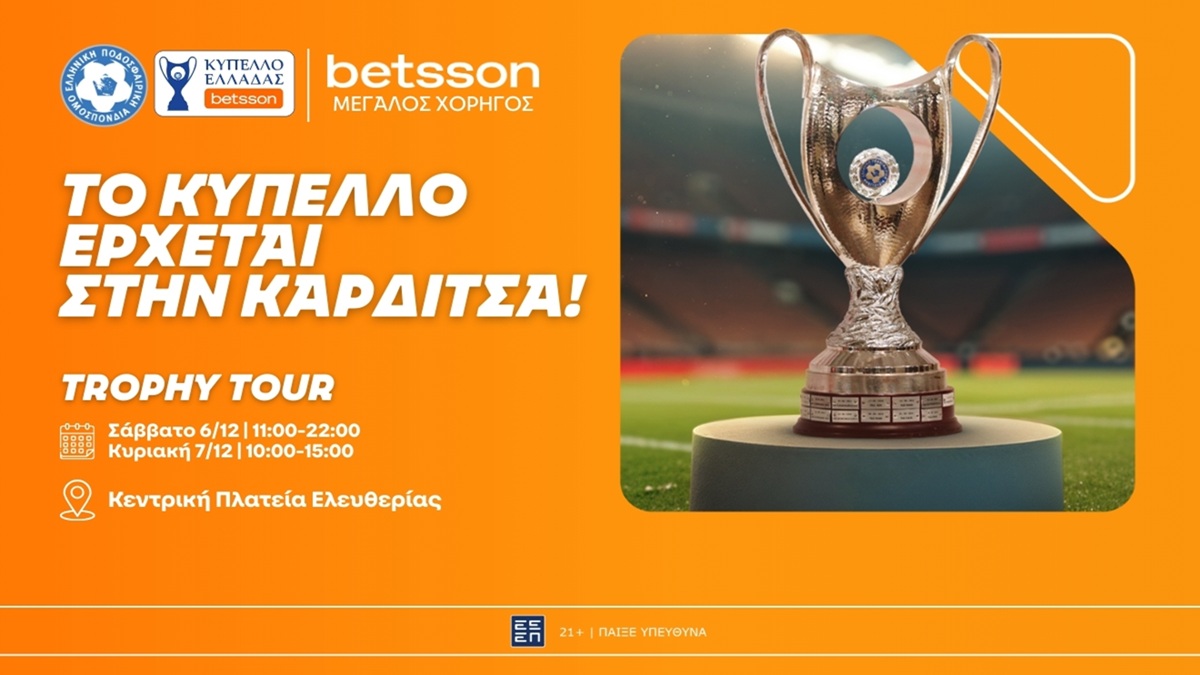 Το ταξίδι του Betsson Trophy Tour συνεχίζεται και, μετά από τρεις δυναμικές στάσεις, η Καρδίτσα ετοιμάζεται να υποδεχθεί το τρόπαιο του Κυπέλλου Ελλάδας Betsson στις 6 και 7 Δεκεμβρίου. Μία πόλη με έντονη αθλητική κουλτούρα γίνεται το επόμενο σημείο συνάντησης για όλους και θα έχουν την ευκαιρία να ζήσουν από κοντά αυτή τη μοναδική εμπειρία.