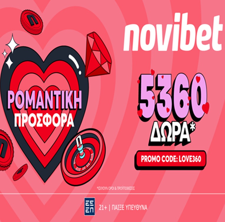 Εκτός από την απόλυτη προσφορά* LOVE360 η οποία θα είναι διαθέσιμη στην πλατφόρμα της Novibet μέχρι τις 16 Φεβρουαρίου 2026 στις 23:59, όποιος επιλέξει τη Novibet για την διασκέδασή του θα βρει 1000+ προσφερόμενες αγορές σε όλους τους αγώνες, ενώ τα μέλη του καζίνο μπορούν να βρουν μεγάλη γκάμα προσφορών*, Novibet Branded τραπέζια και κορυφαίο πρόγραμμα ανταμοιβής*.
