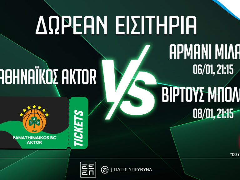 Παναθηναϊκός AKTOR: Δωρεάν εισιτήρια για τα ματς με Αρμάνι Μιλάνο και Βίρτους Μπολόνια (διαγωνισμός*)