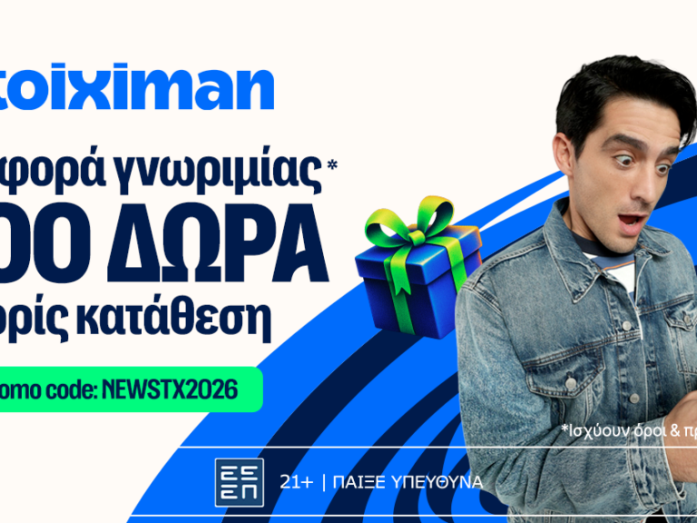 Η Stoiximan μοιράζεται με ολοένα και περισσότερο κόσμο το μοναδικό προϊόν της σε στοίχημα, Live Casino και όχι μόνο. Έτσι, παρουσιάζει μία νέα μοναδική προσφορά γνωριμίας χωρίς κατάθεση,για να καλωσορίσει τα νέα μέλη της.