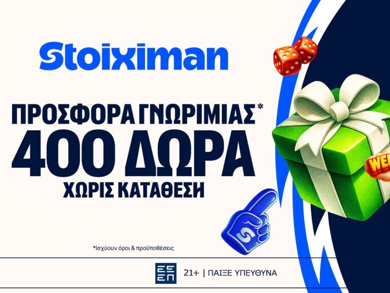 Προσφορά γνωριμίας από τη Stoiximan με 400 δώρα* + 100 έξτρα δώρα* χωρίς κατάθεση!