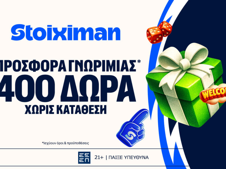 Προσφορά γνωριμίας από τη Stoiximan με 400 δώρα* + 100 έξτρα δώρα* χωρίς κατάθεση!