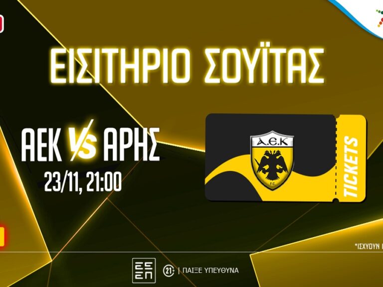 Αυτή τη φορά, μια συναρπαστική εμπειρία σε περιμένει στην “OPAP Arena“, καθώς μπορείς να μπεις στην κλήρωση*, για να κερδίσεις 1 διπλό εισιτήριο σουίτας, ώστε να απολαύσεις μαζί με το plus one σου την αναμέτρηση ΑΕΚ-Άρης (23/11, 21:00), για την 11η αγωνιστική της Super League.