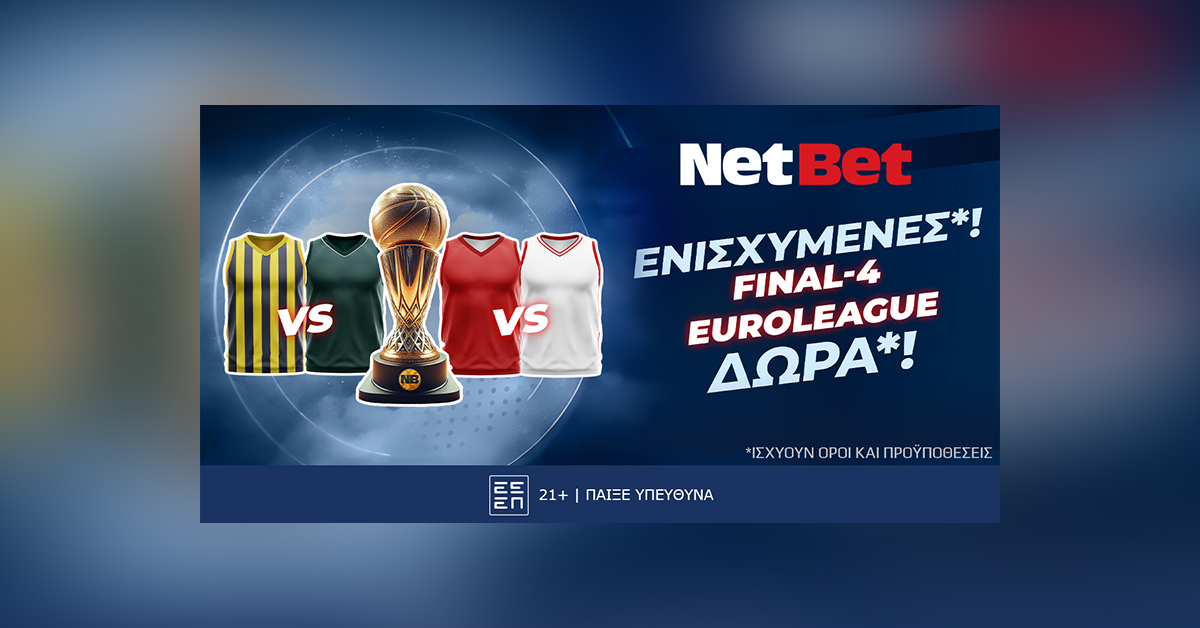 Το Final-4 λάμπει με δώρα* για το… Αμπου Ντάμπι! Άμμος, ιδρώτας και δόξα! Το Final-4 φέρνει την EuroLeague στην έρημο. Παναθηναϊκός, Ολυμπιακός, Φενέρμπαχτσε και Μονακό θα διεκδικήσουν το στέμμα της κορυφαίας ευρωπαϊκής διοργάνωσης στο Άμπου Ντάμπι και εσύ απολαμβάνεις το Final-4 με σούπερ δώρα* και προσφορές* από τη NetBet.gr, όπως και μοναδικά ειδικά στοιχήματα!