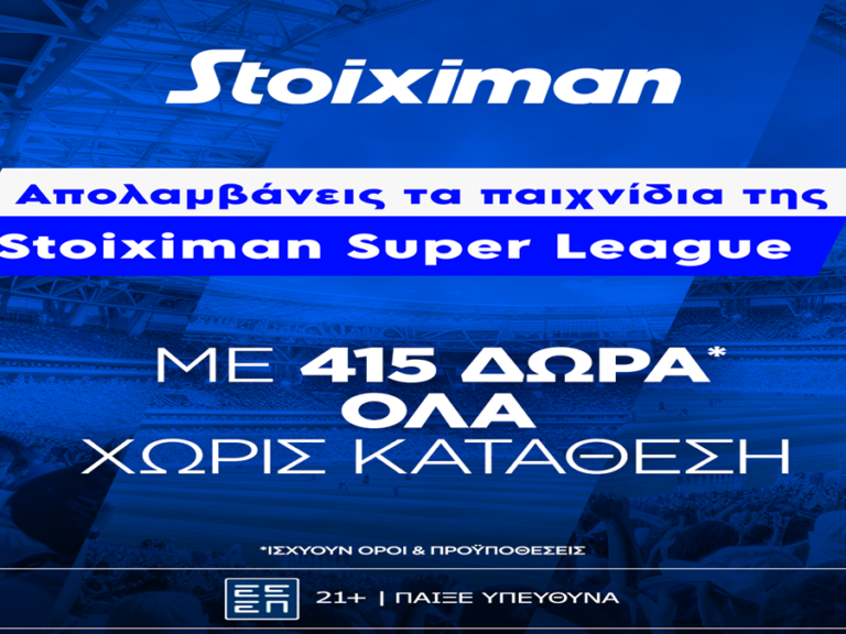Προσφορά* εγγραφής από τη Stoiximan με 415* Δώρα* χωρίς κατάθεση*!