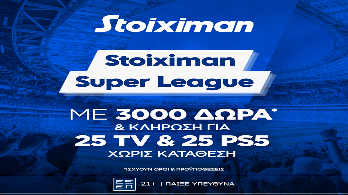Προσφορά* γνωριμίας από τη Stoiximan με 3000 δώρα* χωρίς κατάθεση* και κλήρωση για ΤV 65’’ και PS5!