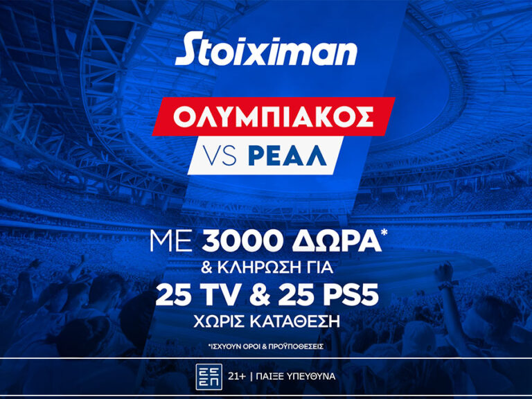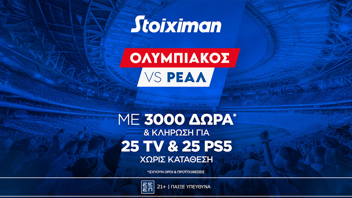 Προσφορά* γνωριμίας από τη Stoiximan με 3000 δώρα* χωρίς κατάθεση* και κλήρωση για ΤV 65’’ και PS5!