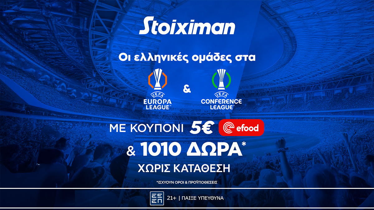 Προσφορά* γνωριμίας από τη Stoiximan με 1010 δώρα* και κουπόνι efood χωρίς κατάθεση*!