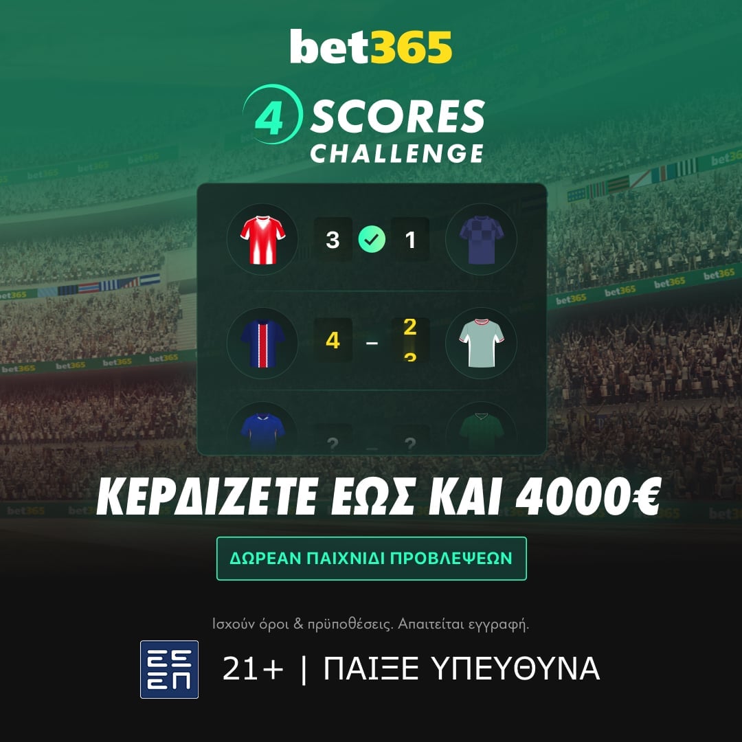 • Πρώτο και πιο σημαντικό: Η συμμετοχή στο 4 Scores Challenge της bet365 είναι δωρεάν!