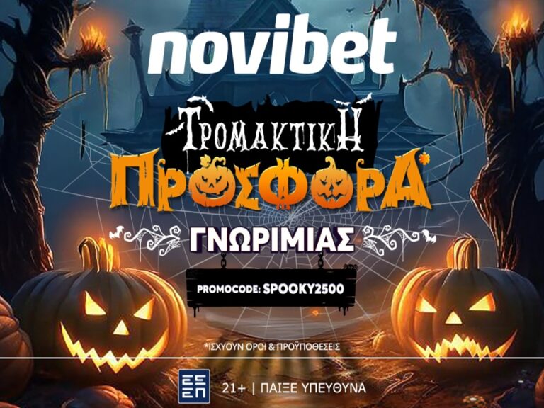 Στη Novibet απολαμβάνεις την δράση στα κορυφαία Ευρωπαϊκά πρωταθλήματα παρέα με μία μοναδική προσφορά* γνωριμίας με… ανατριχιαστικά έπαθλα.