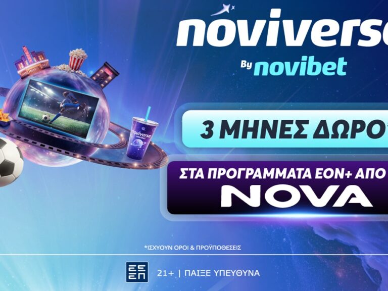 Μπες σήμερα στο Noviverse by Novibet, πάρε εύκολα και γρήγορα την προσφορά 3 μήνες ΔΩΡΕΑN για τα προγράμματα ΕΟΝ+ της Nova και ανακάλυψε έναν κόσμο όπου μπάλα, ταινίες και σειρές συνδυάζονται σε μια εμπειρία που δεν είχες φανταστεί!