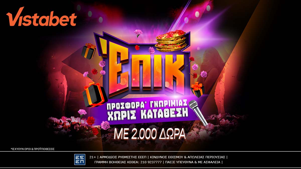 Vistabet – 2.000 δώρα* από την Προσφορά γνωριμίας χωρίς κατάθεση!